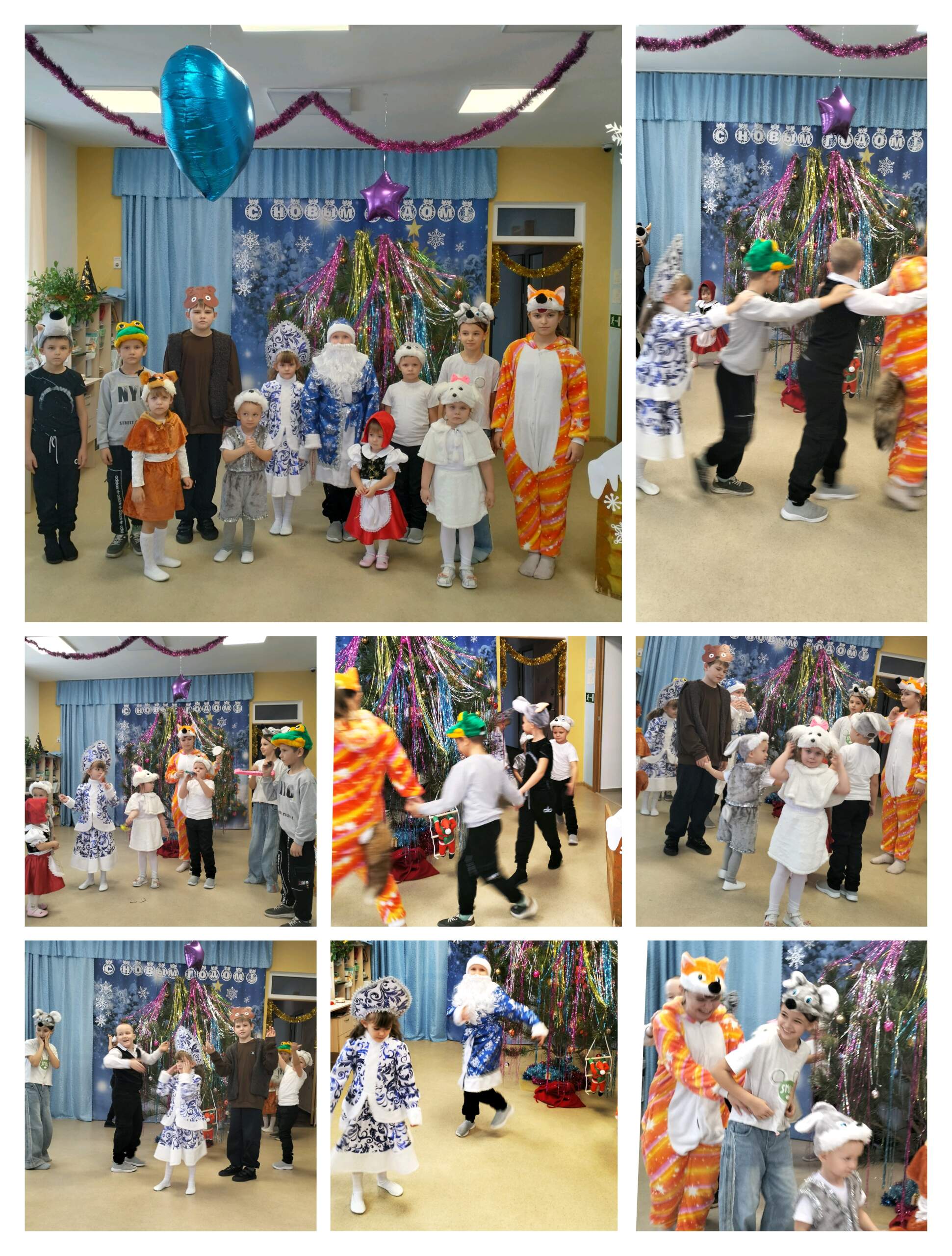 Ребята погрузились в мир чудес, приключений, невероятных превращений и сюрпризов. Красиво украшенный зал, нарядная елка, великолепные костюмы, подарки, Дед Мороз, Снегурочка и множество других сказочных персонажей ожидали наших воспитанников. Разноцветные, сверкающие гирлянды и ярко украшенная ёлочка принесли детям ощущение чуда. Веселые игры, танцы и песни создали неповторимую праздничную атмосферу.